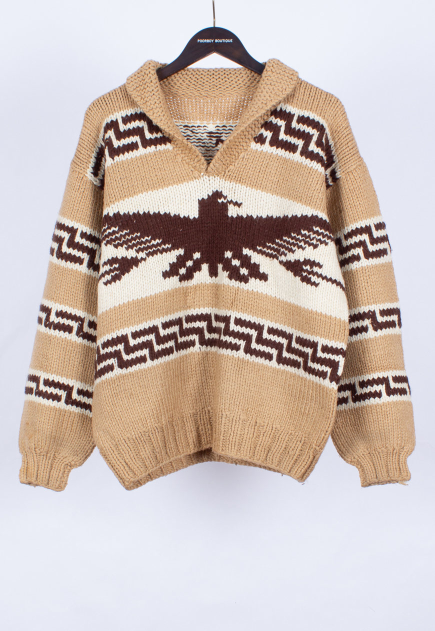 Unisex 90s vintage chunky knitted jumper with shawl collar. Ethnic inca aztec pattern. Heavy knit perfect for winter! 100% Wool